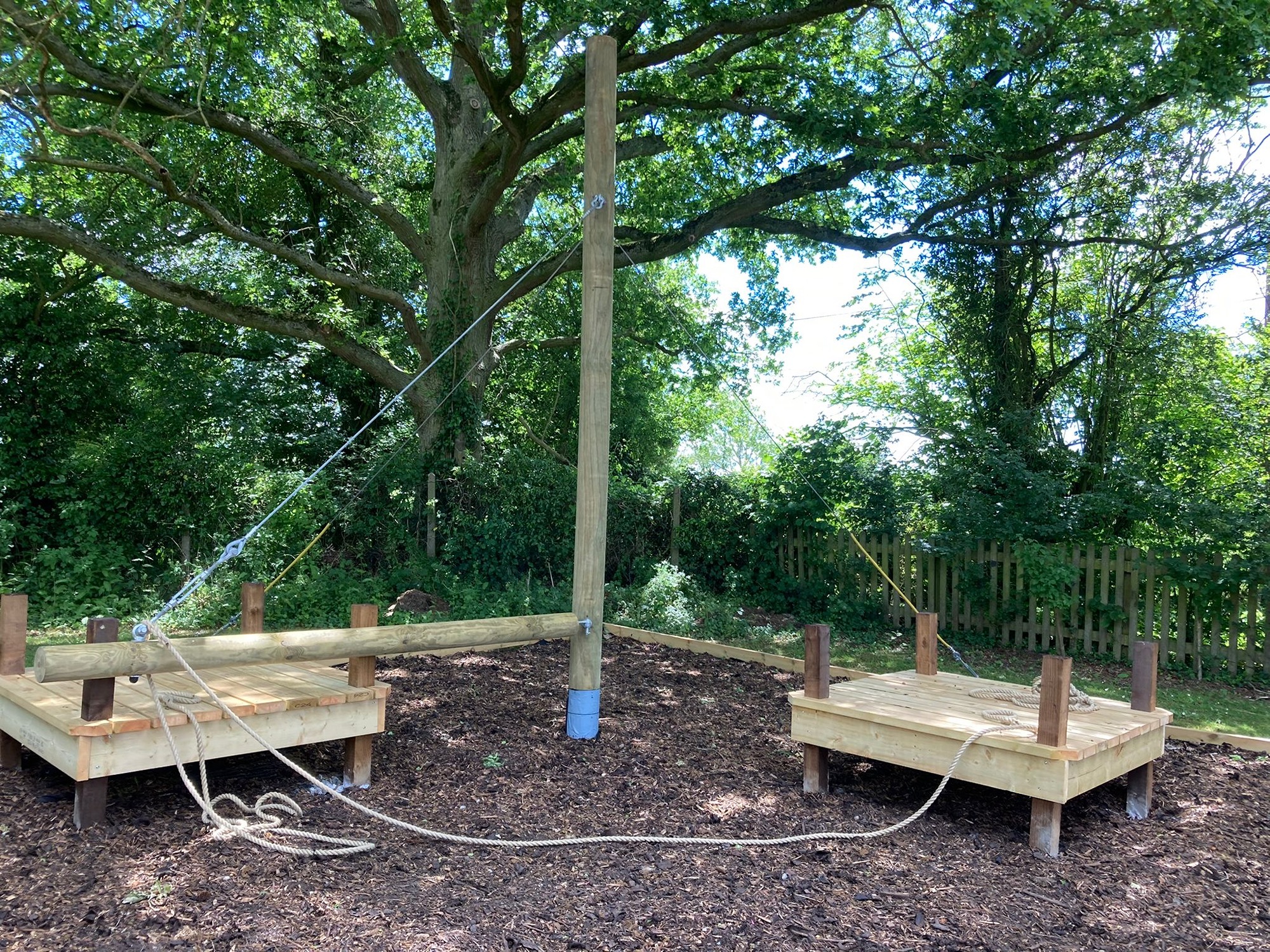 There are two grassed areas. To the west is a large flat area suitable for camping and games. It is well screened and protected on all sides. This can be used as a fully equipped site (tentage and cooking utensils are available). There is a camp fire area with a well-stocked wood pile. At the other side of the building is a large tarmacked area, good for games or for car parking and a grassed area.